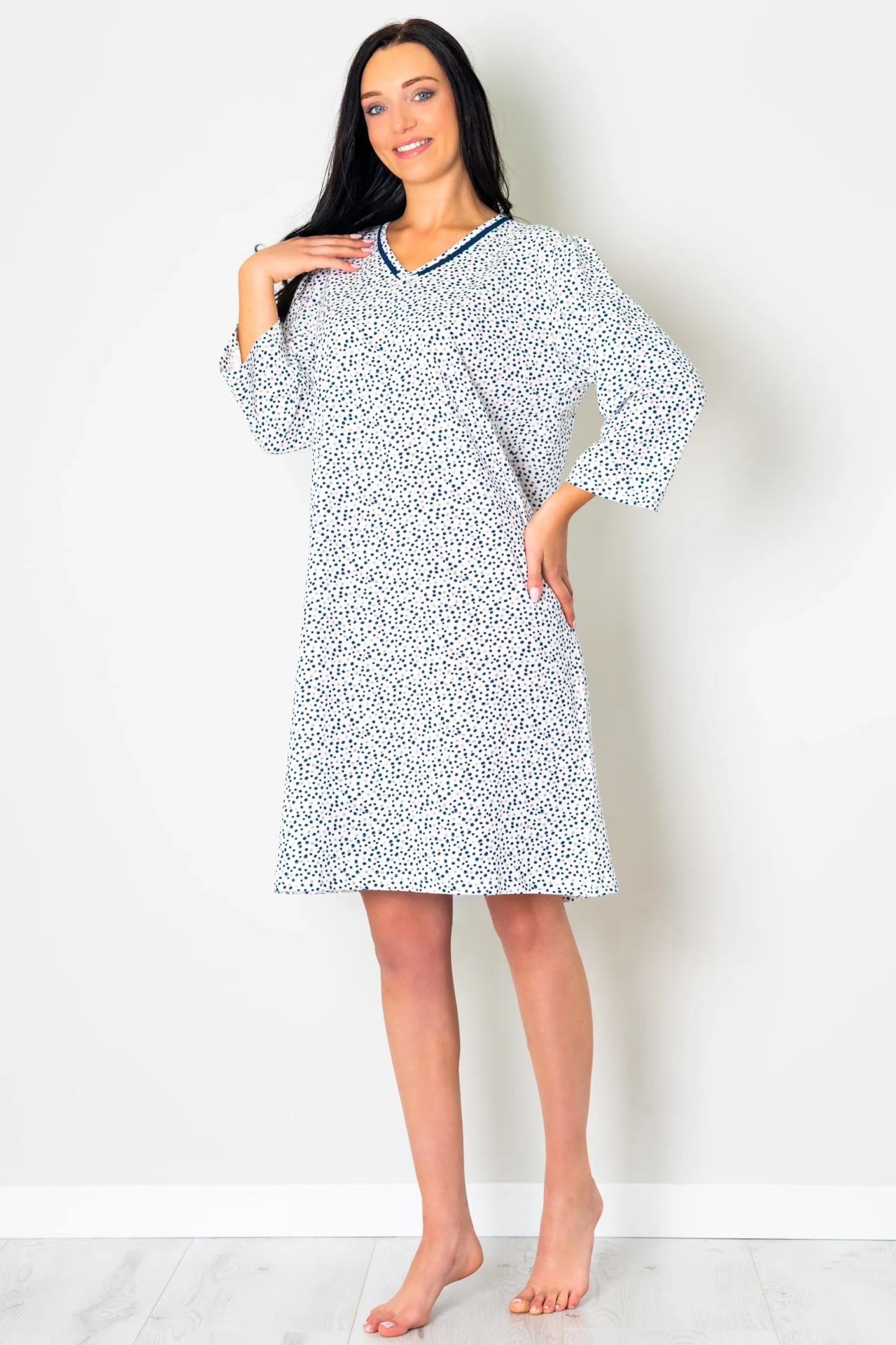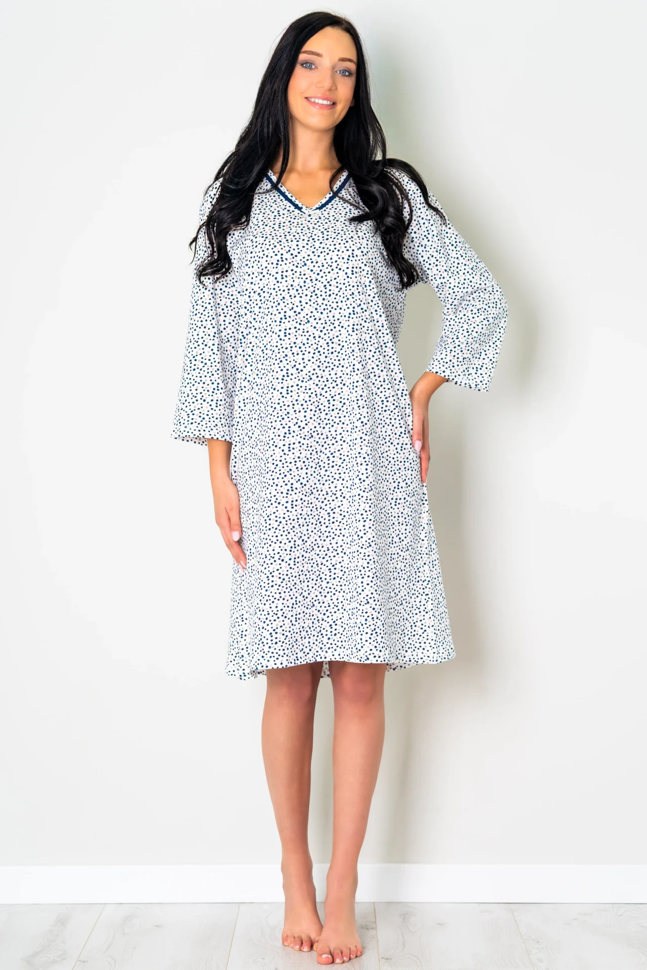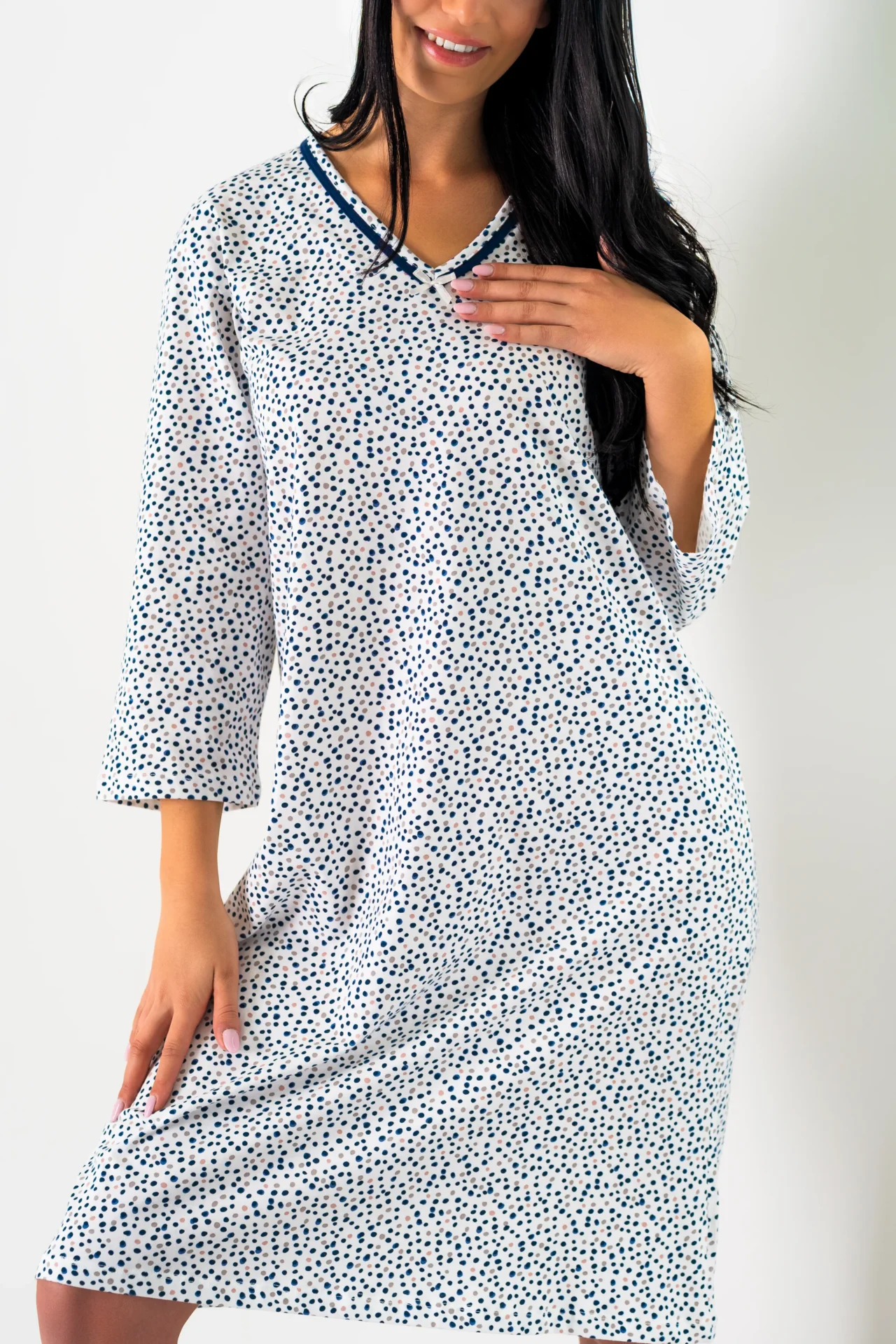 Atrybuty produktu klasyczna koszula nocna biała w Kropki dekolt w serek