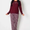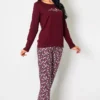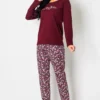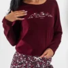 Piżama damska BORDOWY PORANEK długi rękaw i długie spodnie