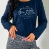 Piżama damska Ejoy na długi rękawek i długie spodnie w kwiatowy print. Ta piękna piżama to połączenie klasyki romantyzmu. Bluzka w pięknym kolorze granatu z delikatnym printem sprawia, że piżamka jest niezwykle twarzowa. Bluzka na długi rękaw. Spodnie długie w drobny kwiatowy print . biało-zielono-jasno jagodowym na granatowym tle nadaje jej charakteru, a subtelny nadruk na bluzce wprowadza w sympatyczny nastrój. Wybierając tę piżamę, wybierasz wygodę i styl. 100% bawełna polski producent Muzzy Nightwear- najpiękniejsze i wymarzone piżamy. Idealny prezent dla każdej modnej kobiety.