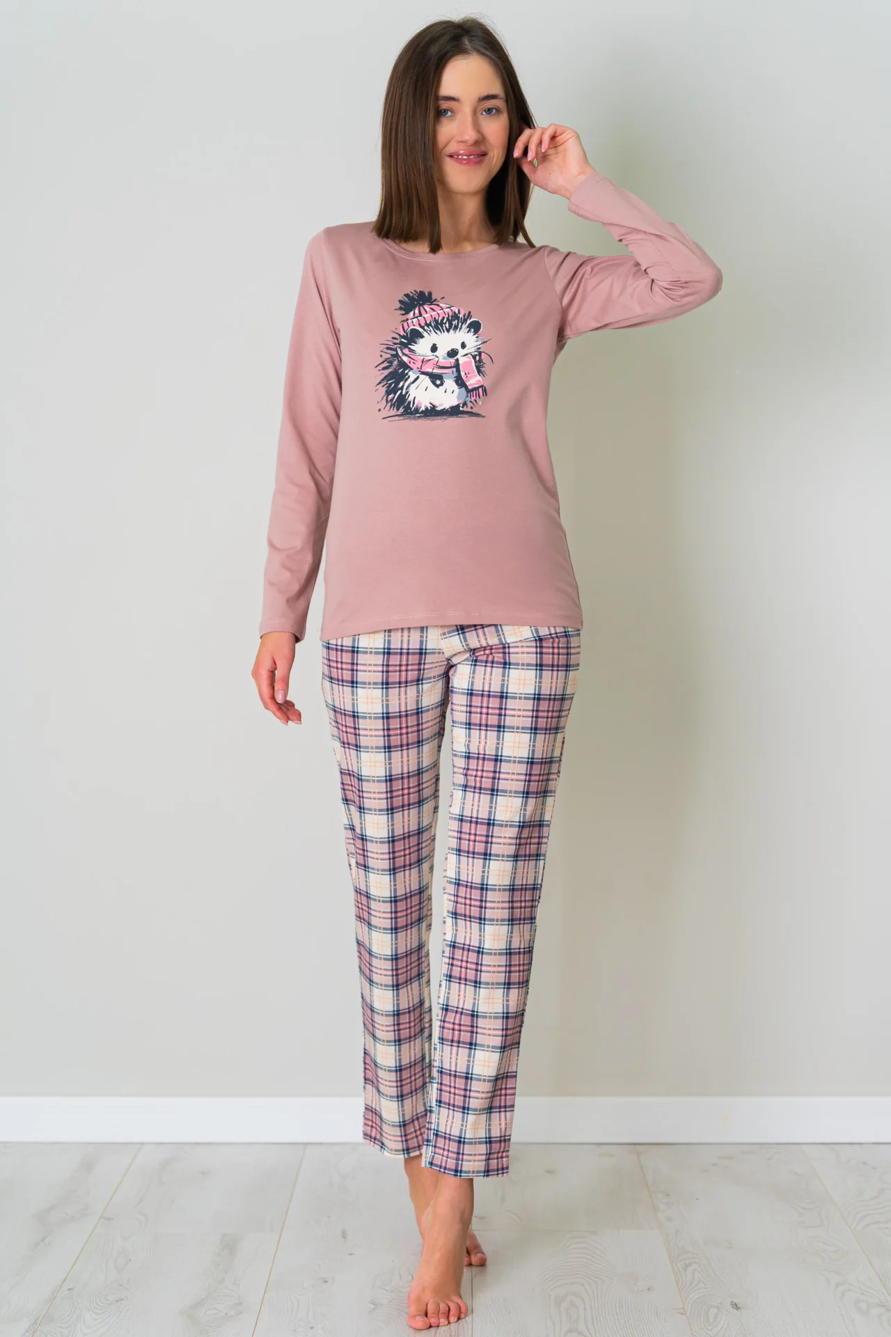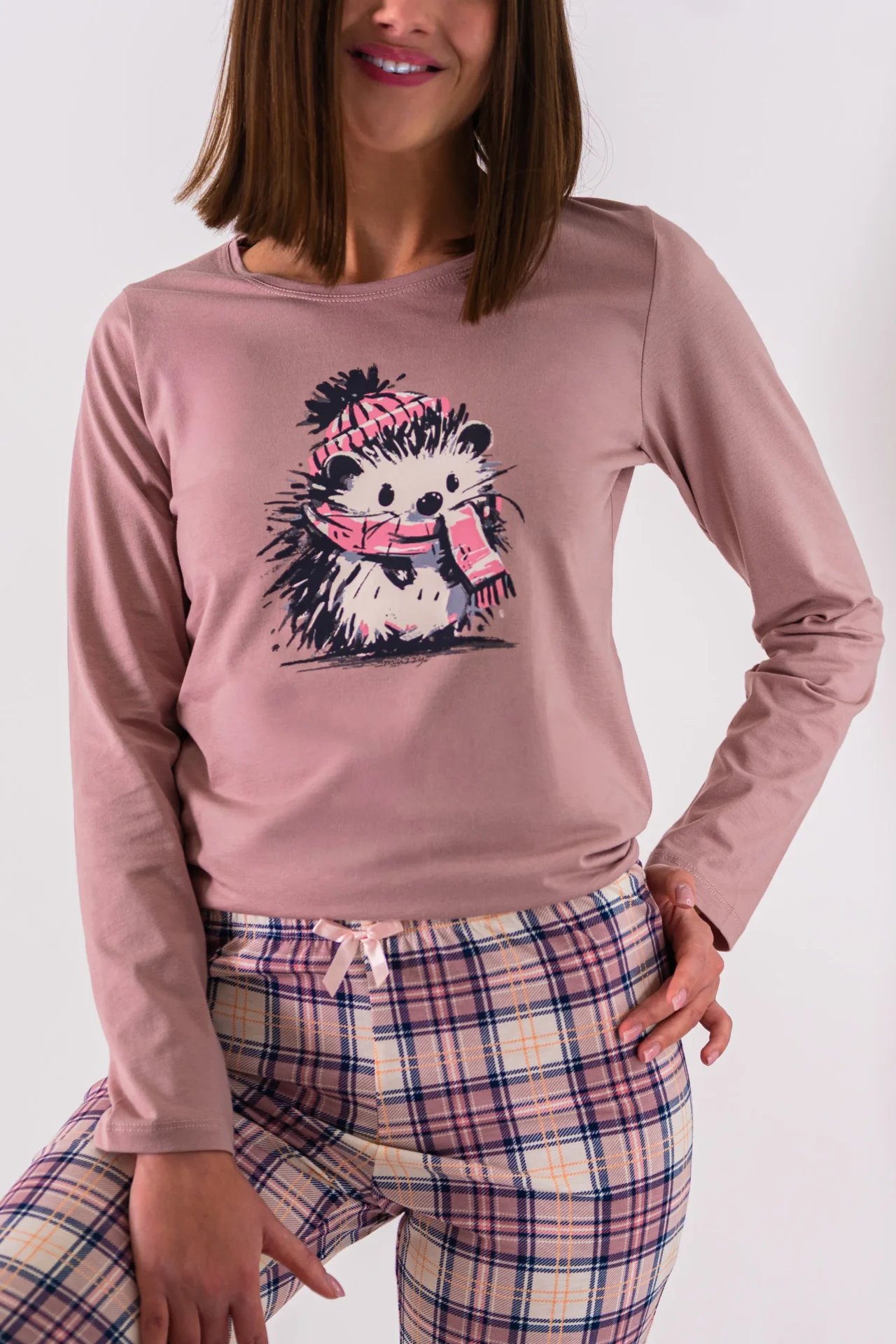 Piżama damska JEŻYK długi rękaw i długie spodnie