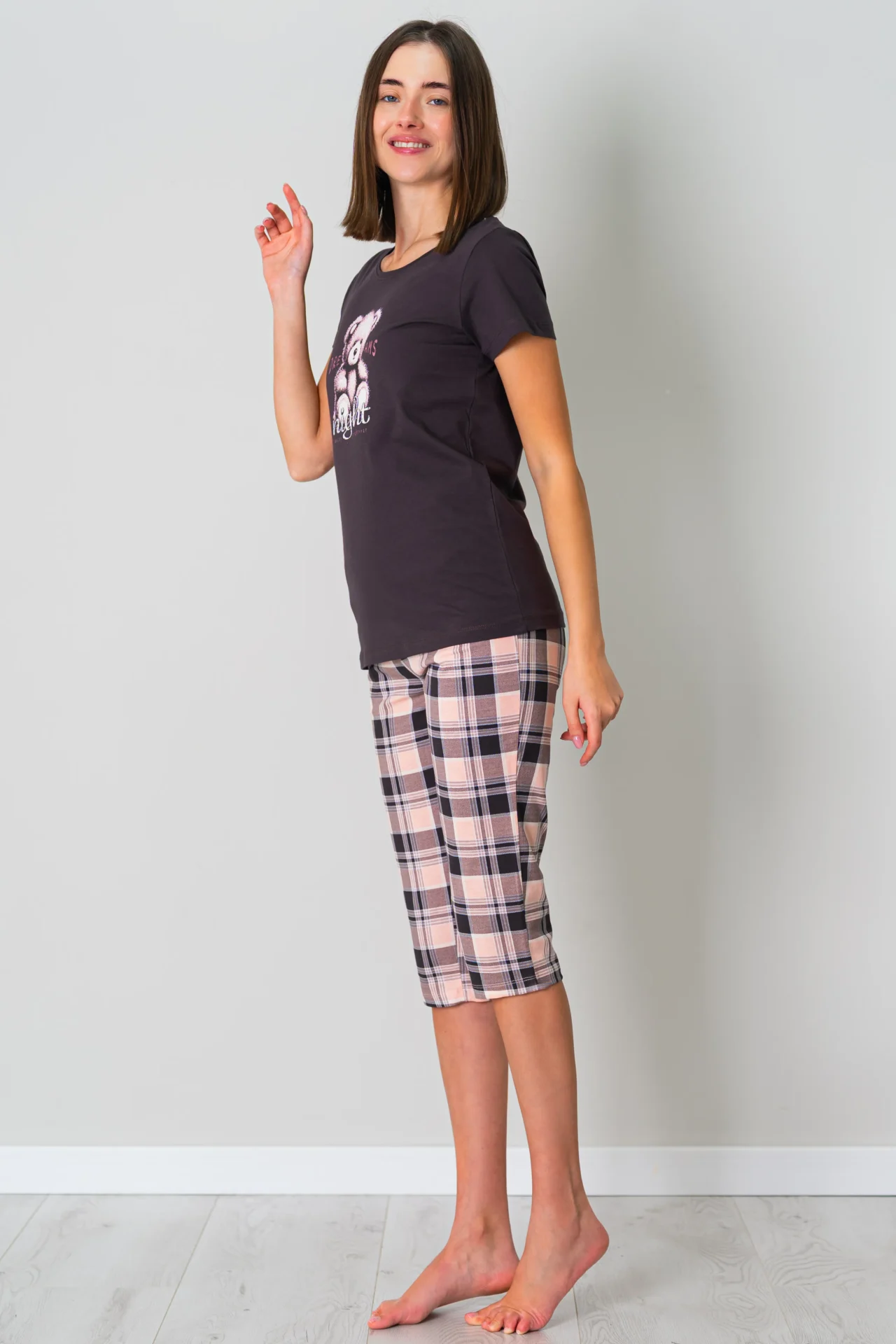 Napisz pierwszą opinię o „Piżama damska MIŚ krótki rękaw i spodnie 3/4w kratę plus size”