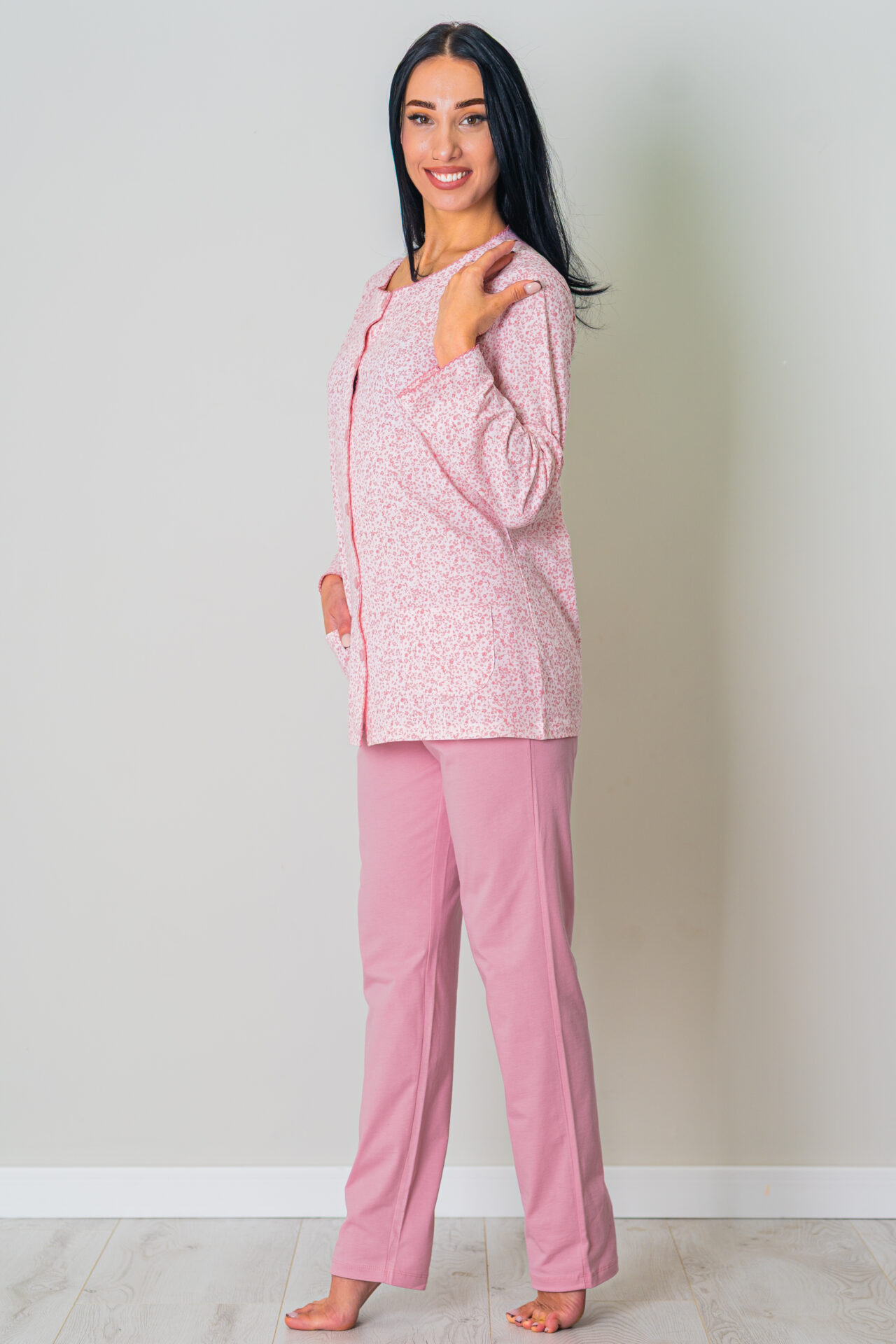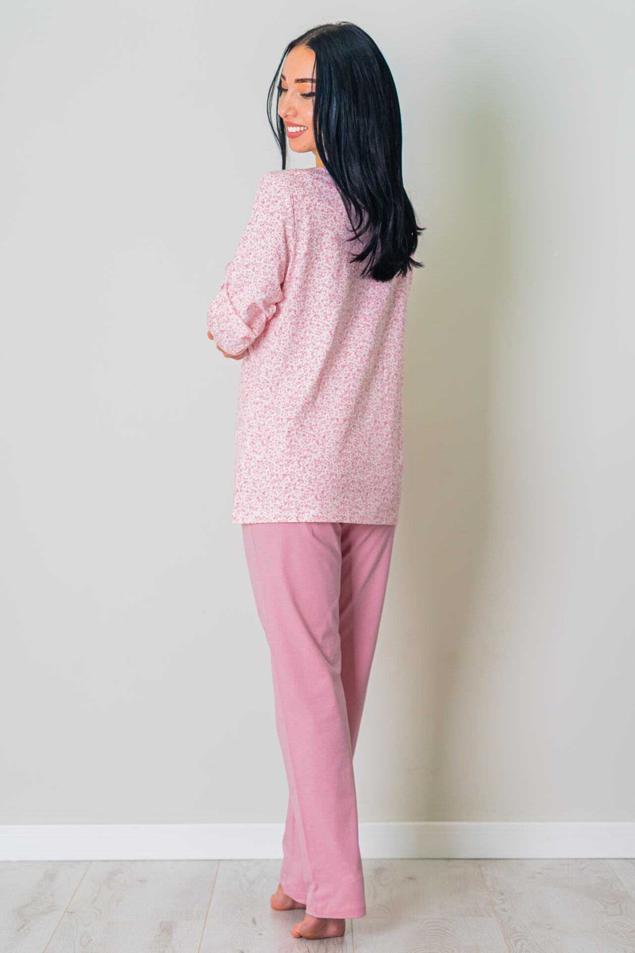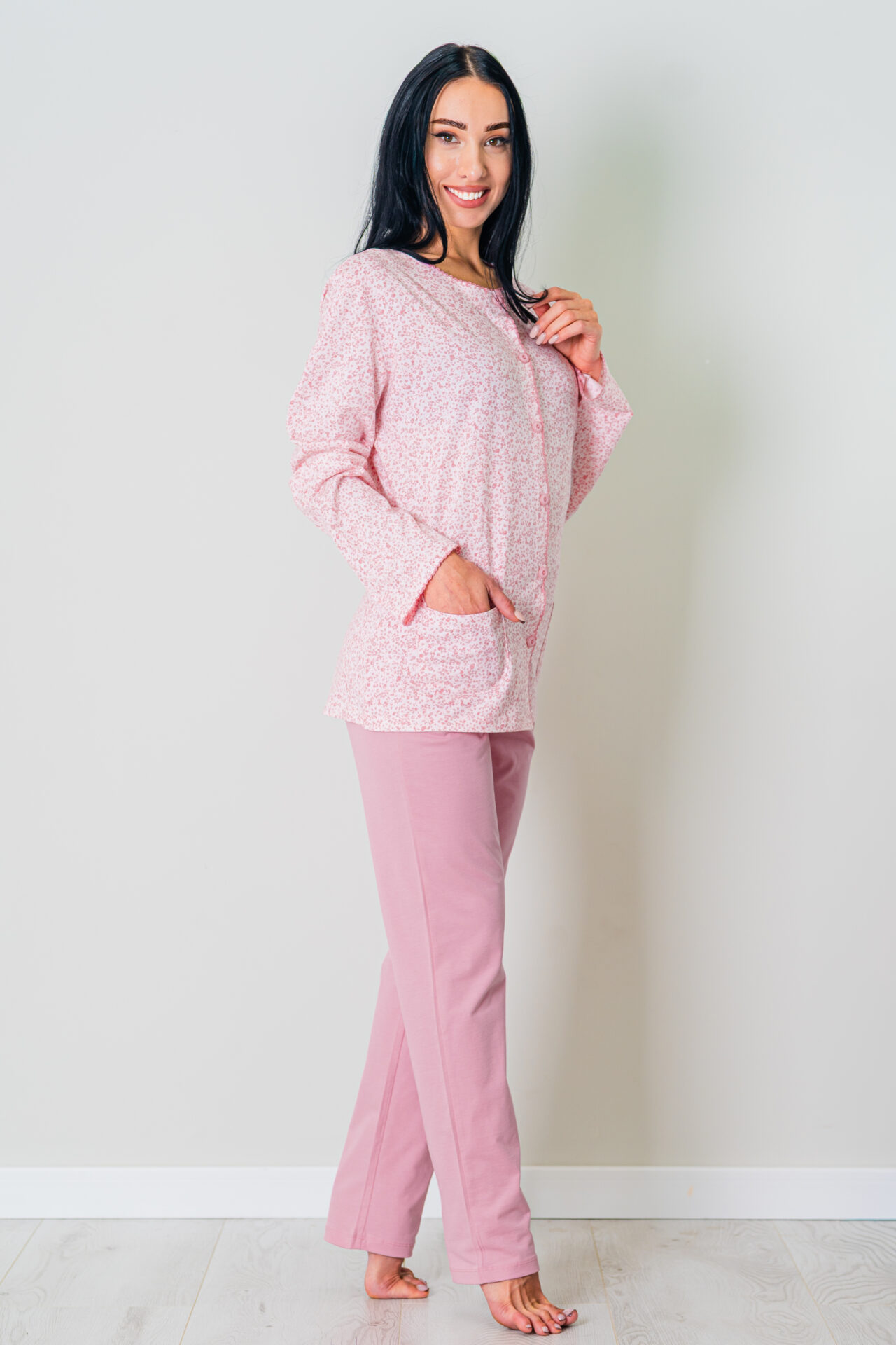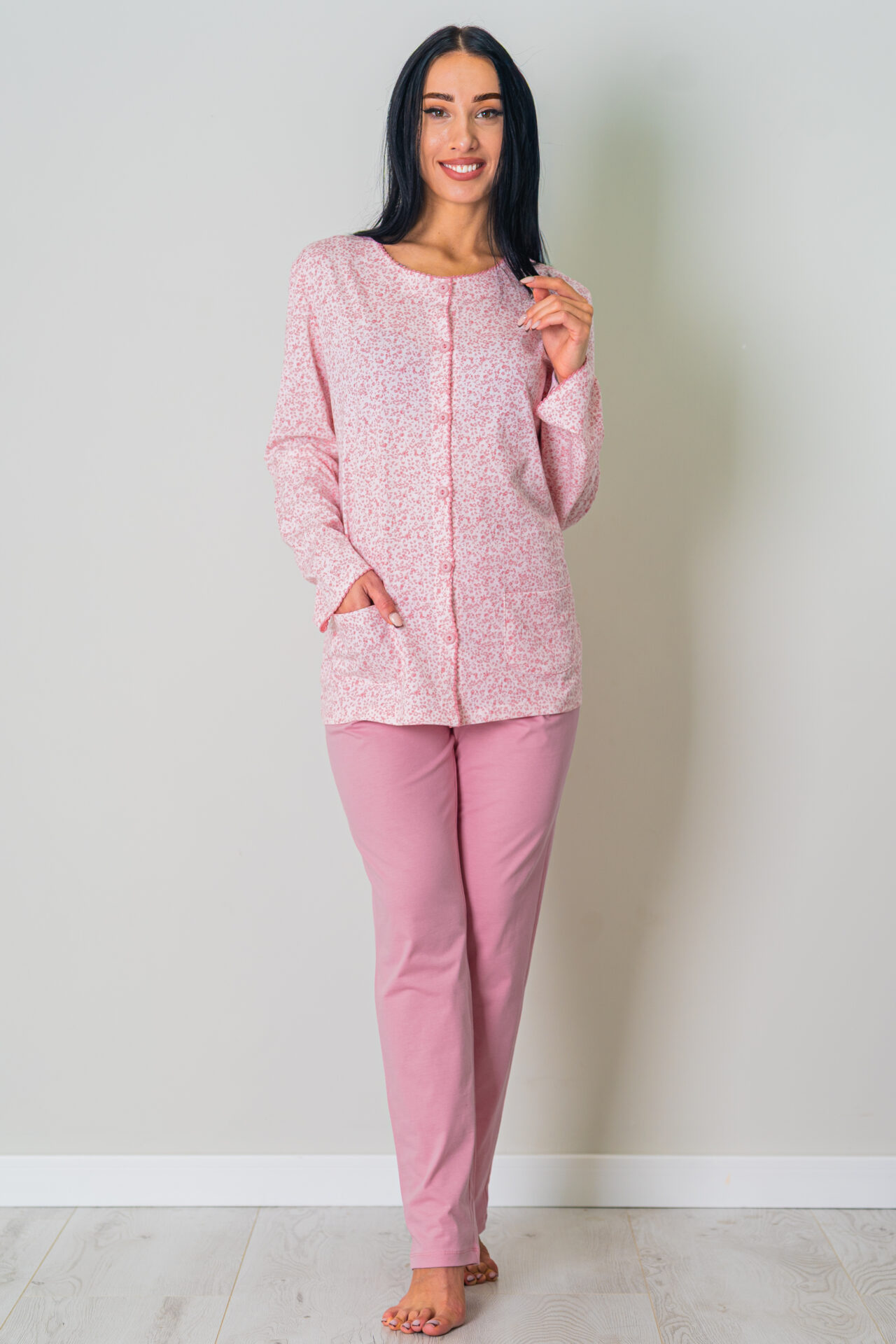 Piżama damska RÓŻOWA długi rękaw i długie spodnie rozpinana