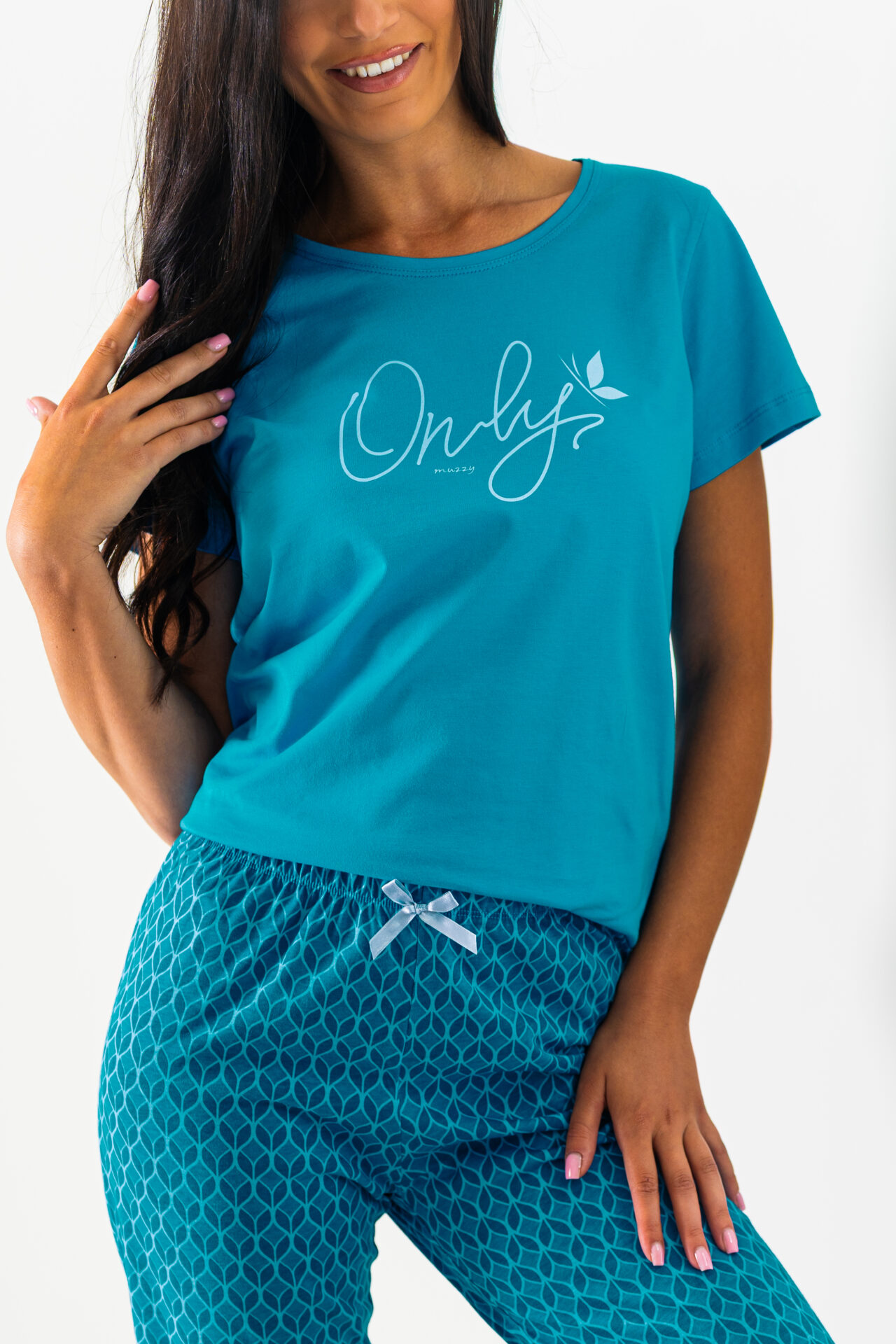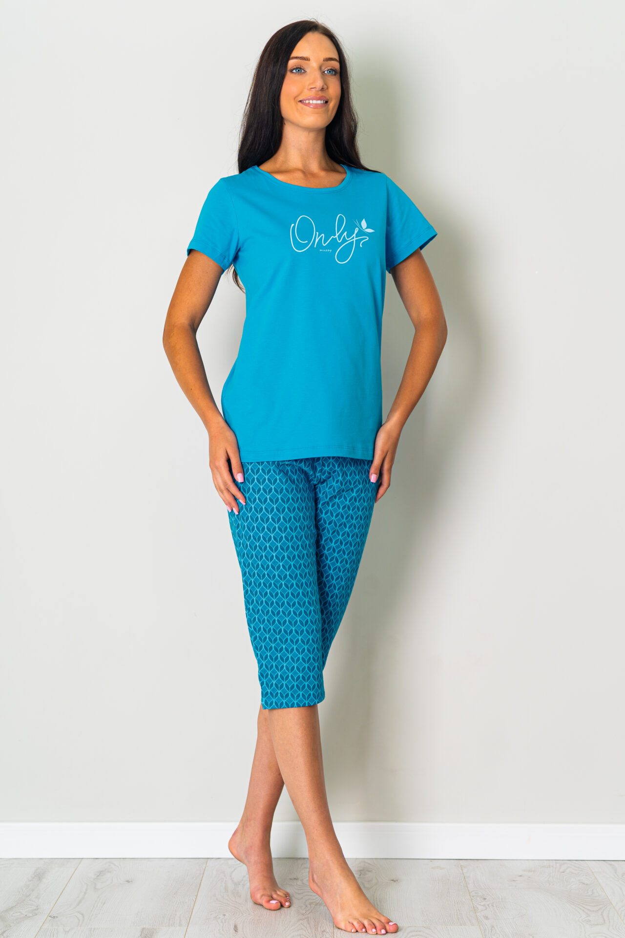Piżama damska turkusowa ONLY krótki rękaw i spodnie za kolano Plus Size