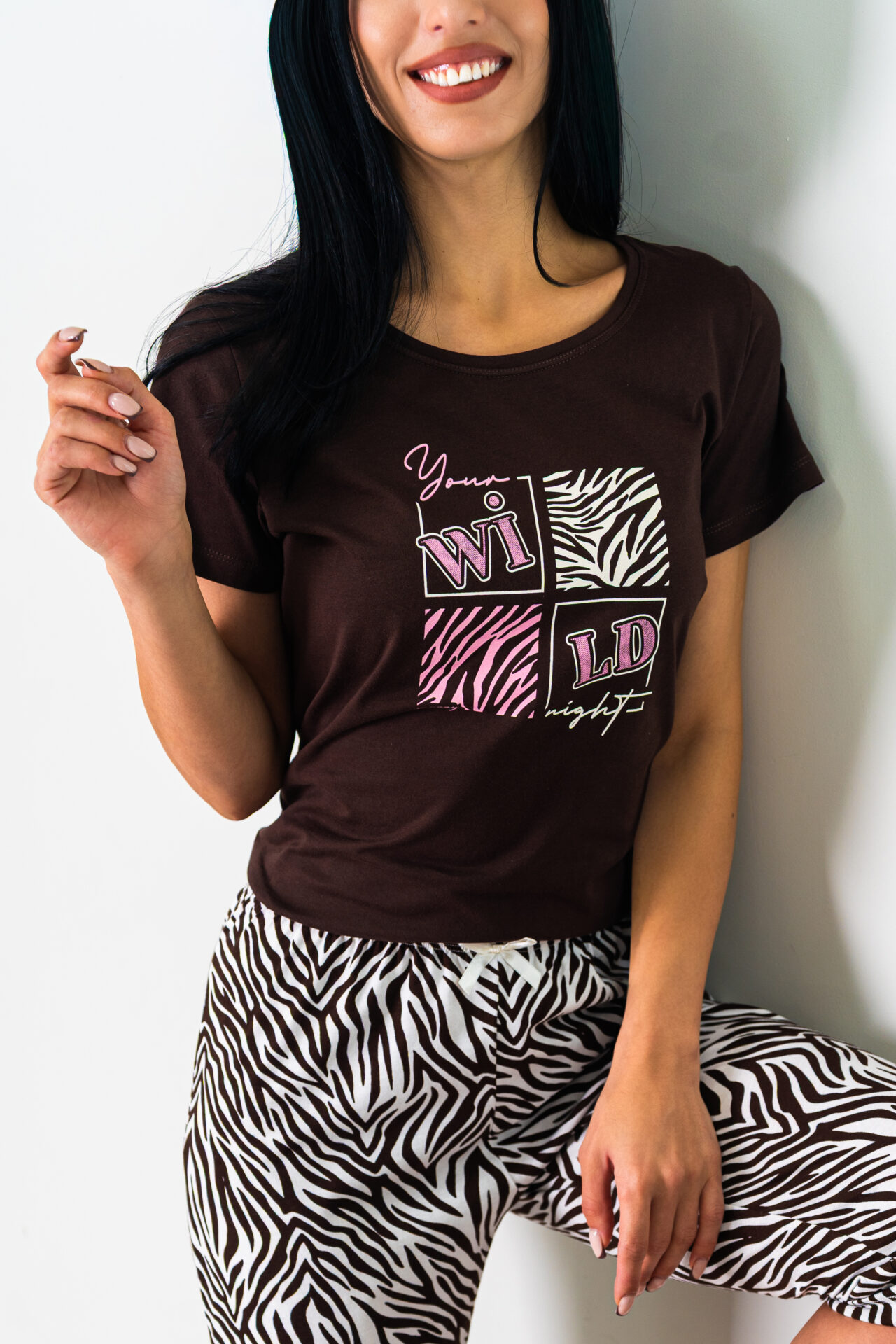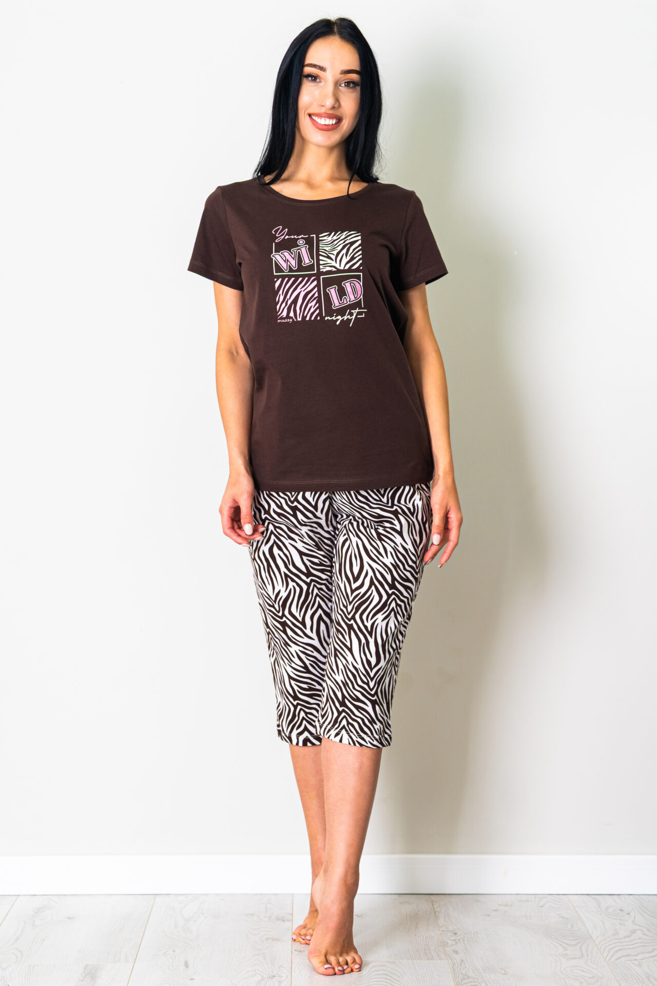 Piżama damska WILD krótki rękaw i spodnie 3/4