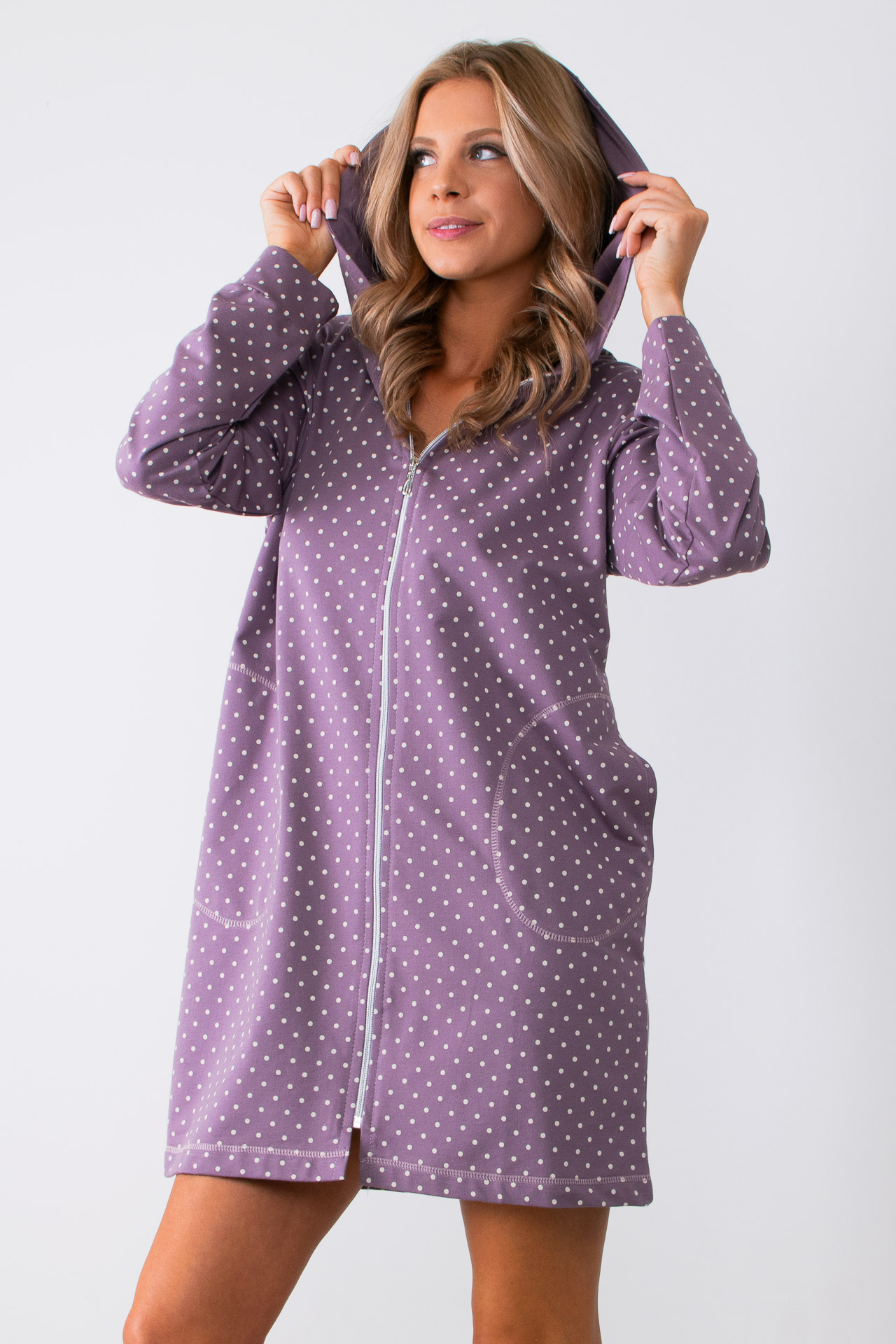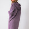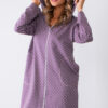 Szlafrok damski wrzos na zamek, to bawełniany szlafrok z kapturem i kieszeniami zapinany na zamek. Szlafrok cały w kolorze wrzosowym w białe kropki . Rękawy zakończone ściągaczem. Produkty marki Muzzy nightwear wykonane są z najlepszej jakości bawełny. Gwarantujemy najwyższą jakość naszych produktów i wysoką wytrzymałość na spieranie. Dzięki naszym produktom poczujesz się niezwykle komfortowo.