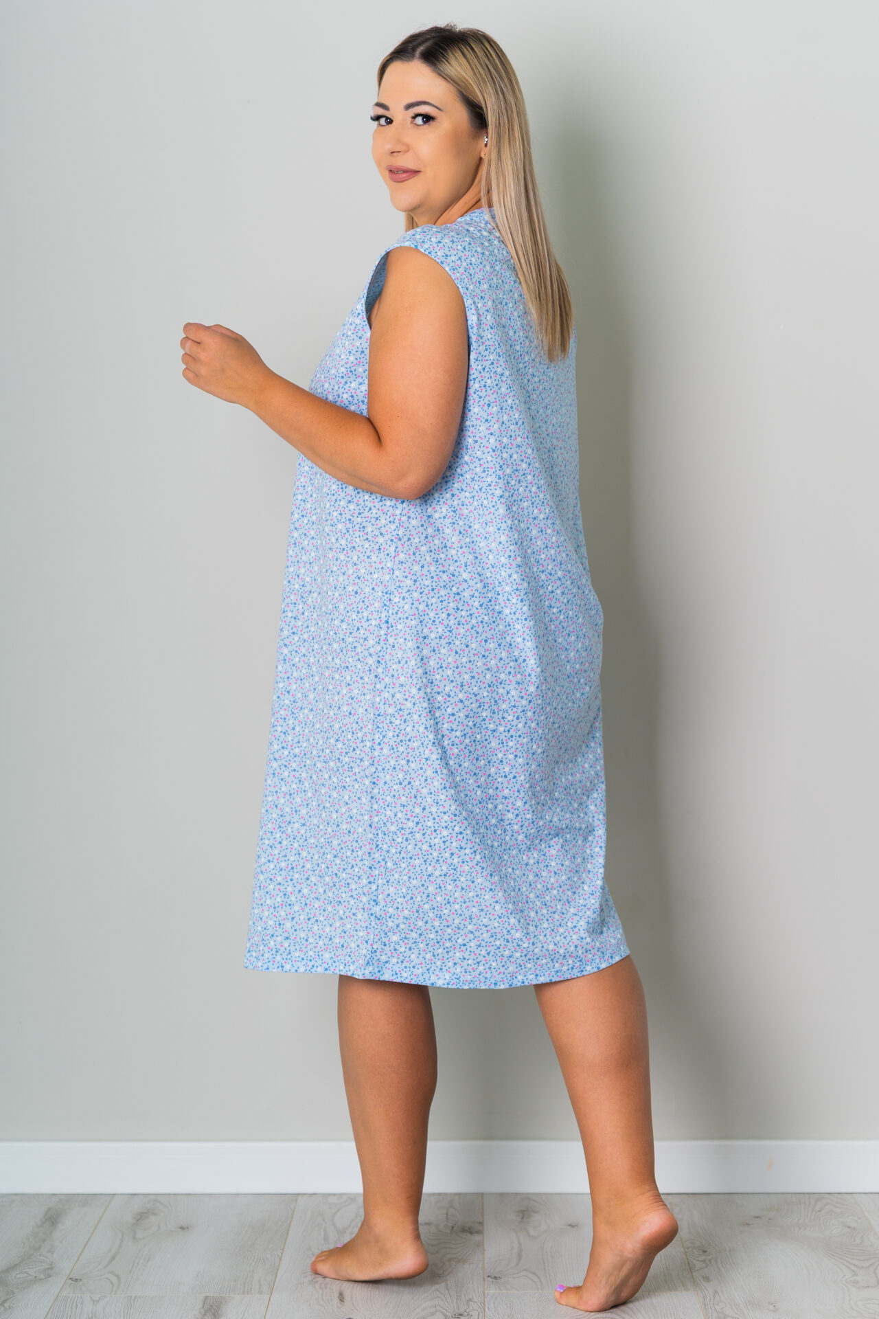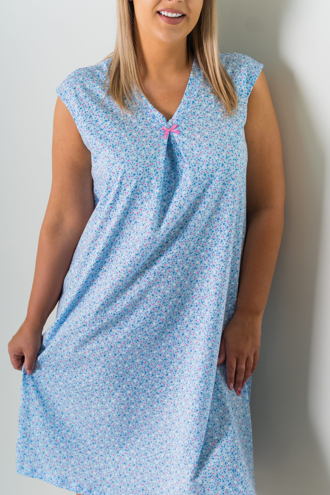 Tunika damska SZEROKIE ramiączko NIEBIESKA, to wygodna koszula do spania na ramiączko z dekoltem w serek. Koszula w odcieniach koloru niebieskiego oraz pięknym KWIATOWYM princie. Ta koszula jest świetna dla osób, które lubią spać w klasycznej, długiej koszuli. Długa koszula sięga łydek, a jej krój rozszerza się ku dołowi. Koszula posiada piękne marszczenie wokół dekoltu, które nadają jej dodatkowego uroku. Dekolt został urozmaicony delikatną białą kokardką. Bawełna 100%, polski producent Muzzy. Zadbaj o jakość swojego snu i poczuj się komfortowo z naszą koszulą nocną klasyczną rozmiary PLUS SIZE.