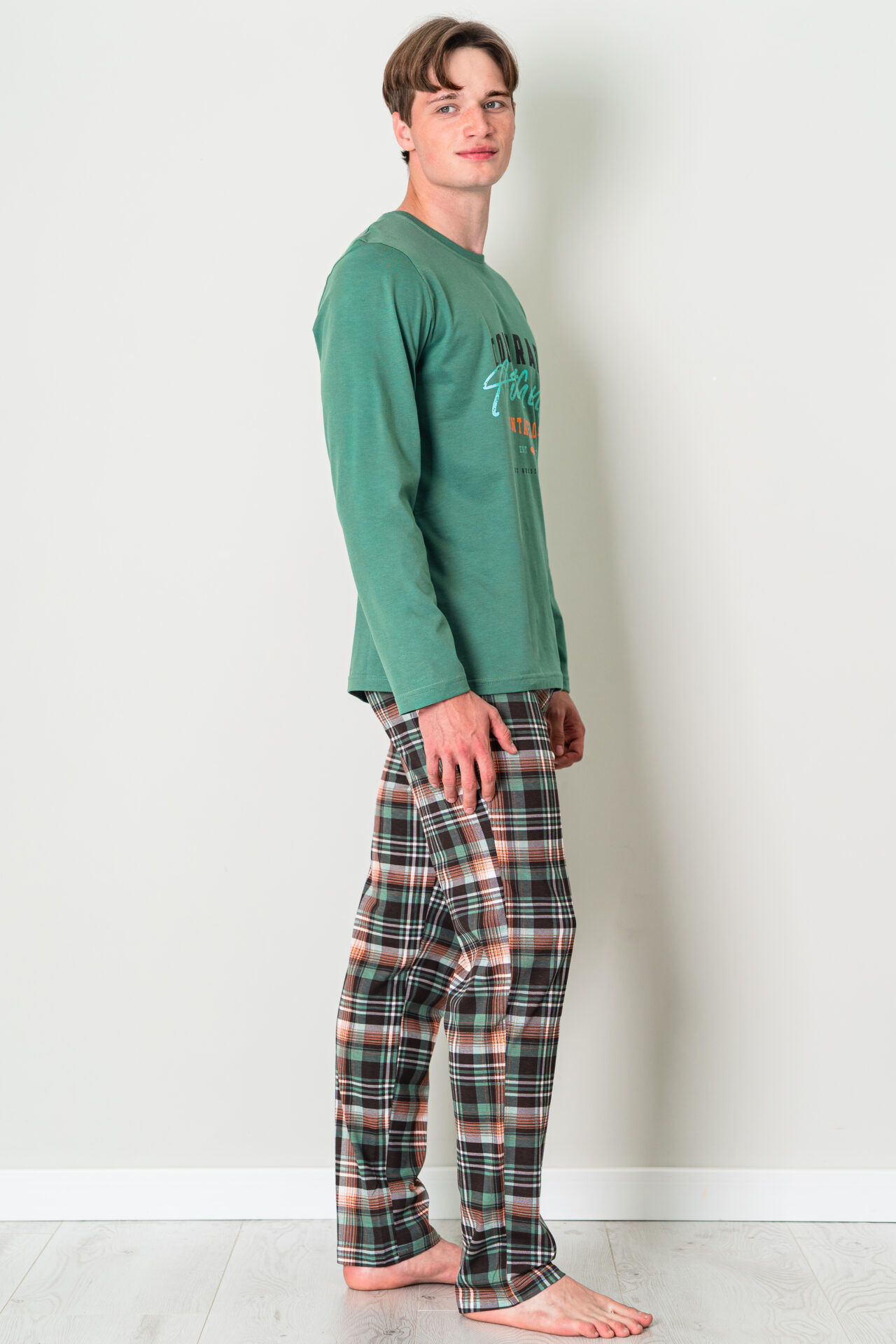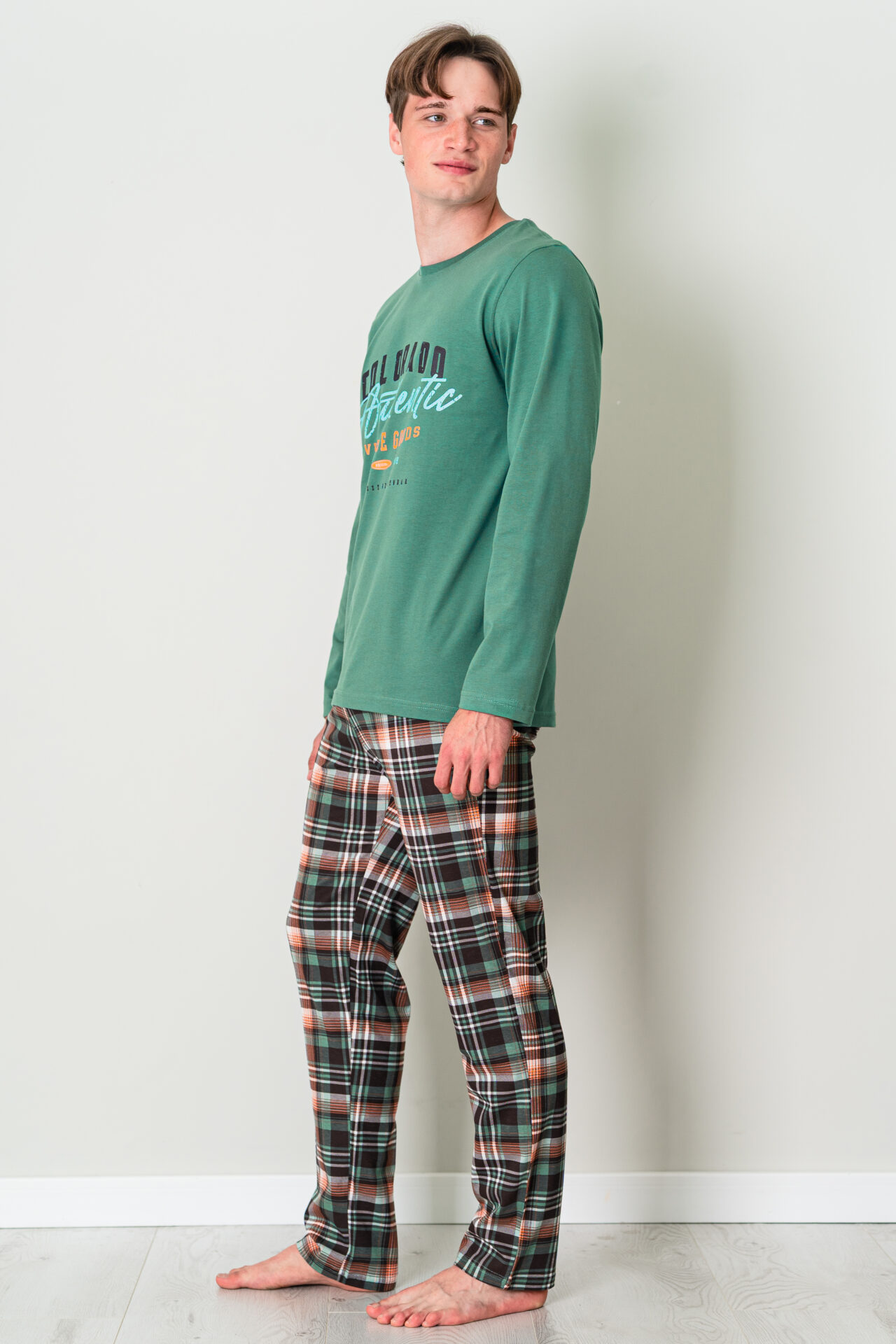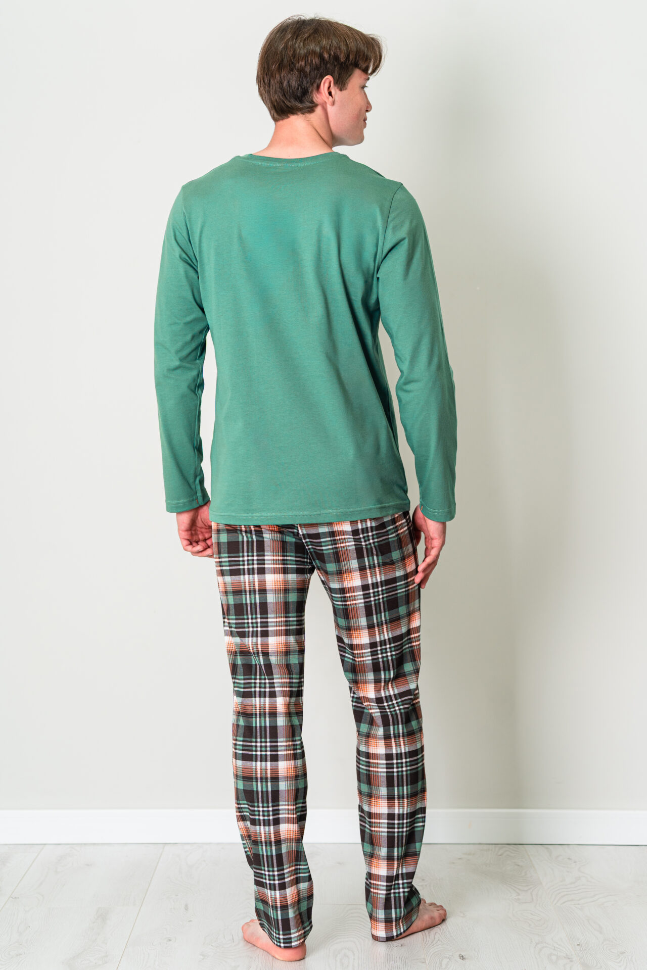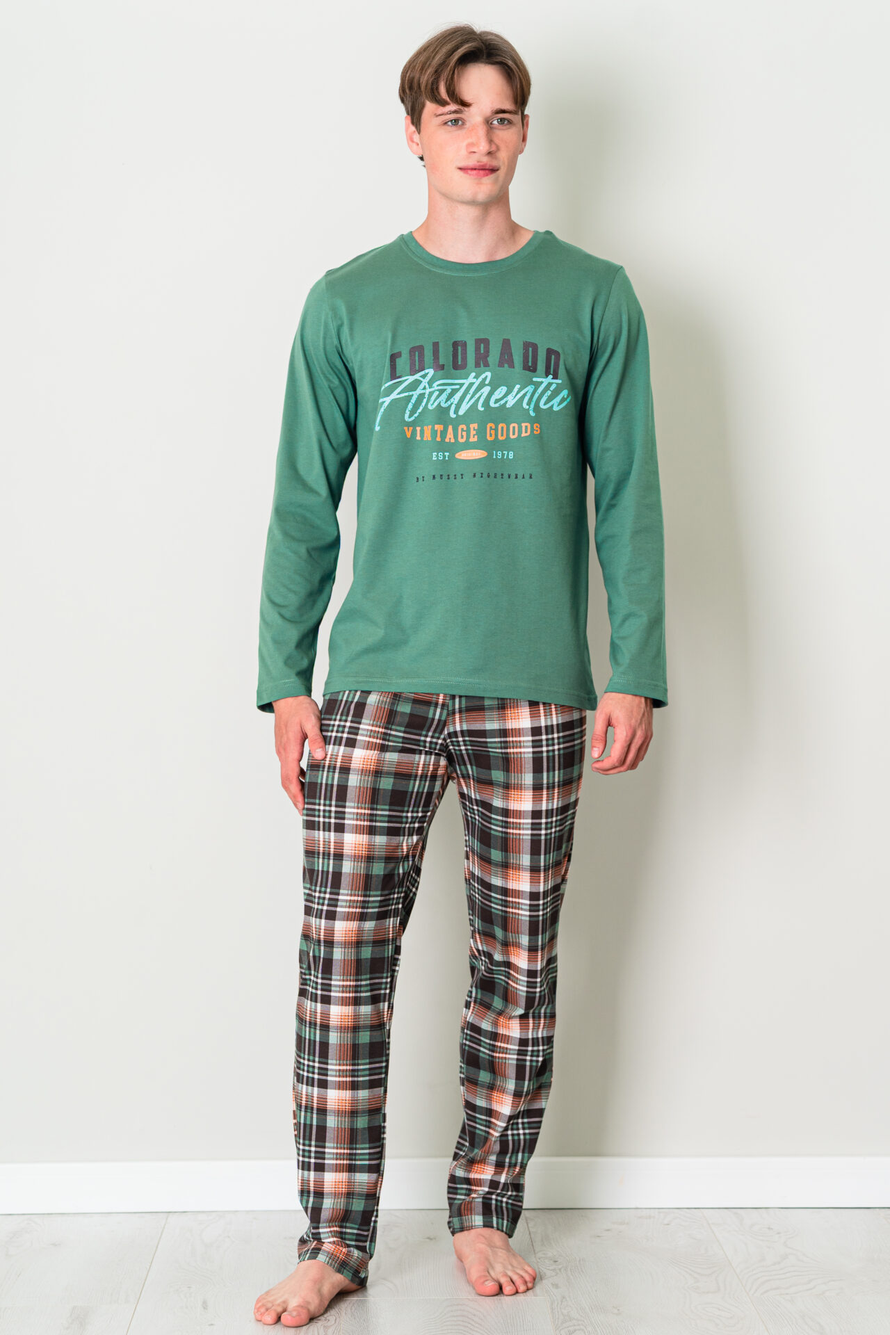 Zielona piżama męska Colorado ze spodniami w zielono – pomarańczową kratę